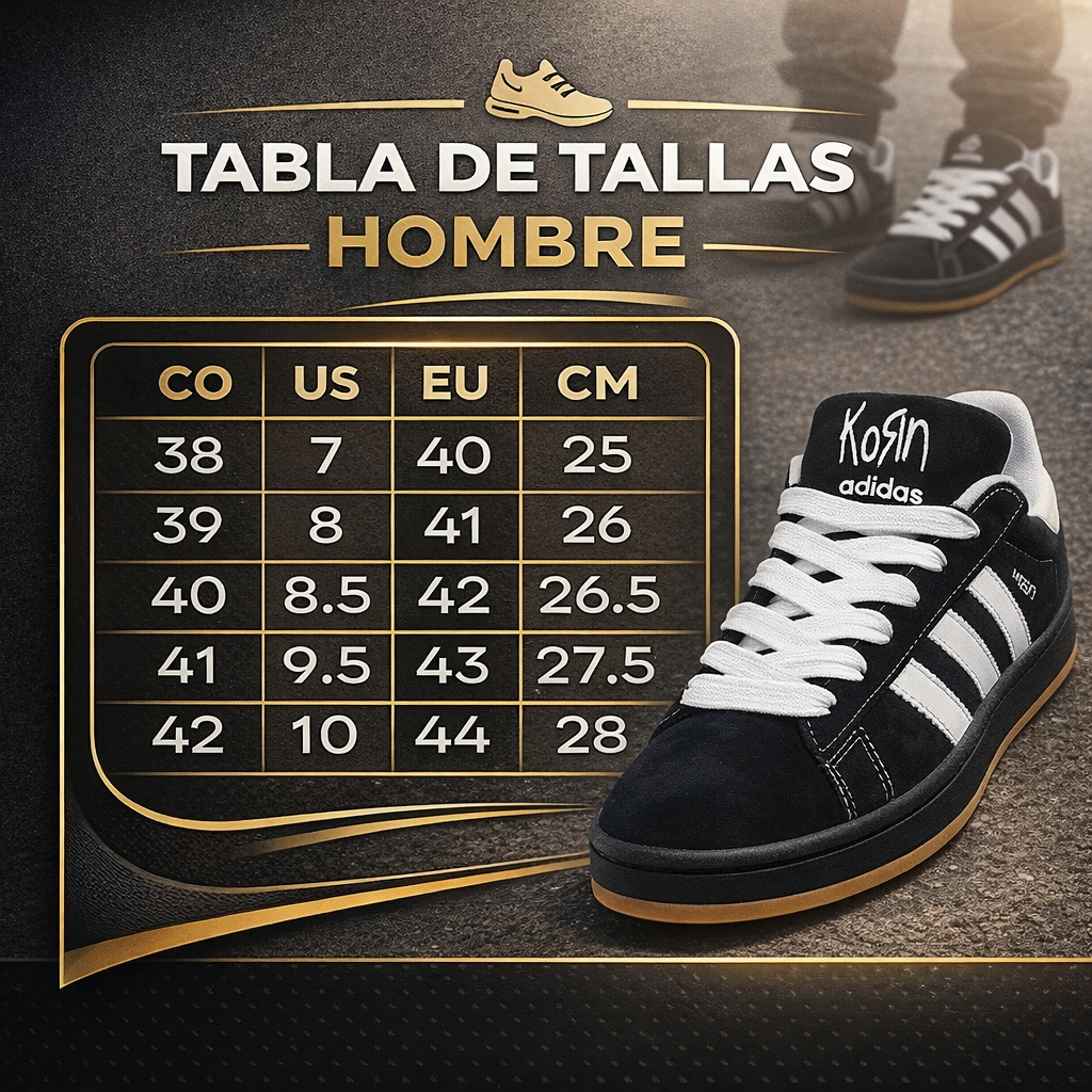 Zapato Nacional, Gamuza premium, suela gum antideslizante y un diseño icónico Adidas x Korn que impone presencia desde el primer paso. Cómodos, duraderos y hechos para destacar sin esfuerzo.